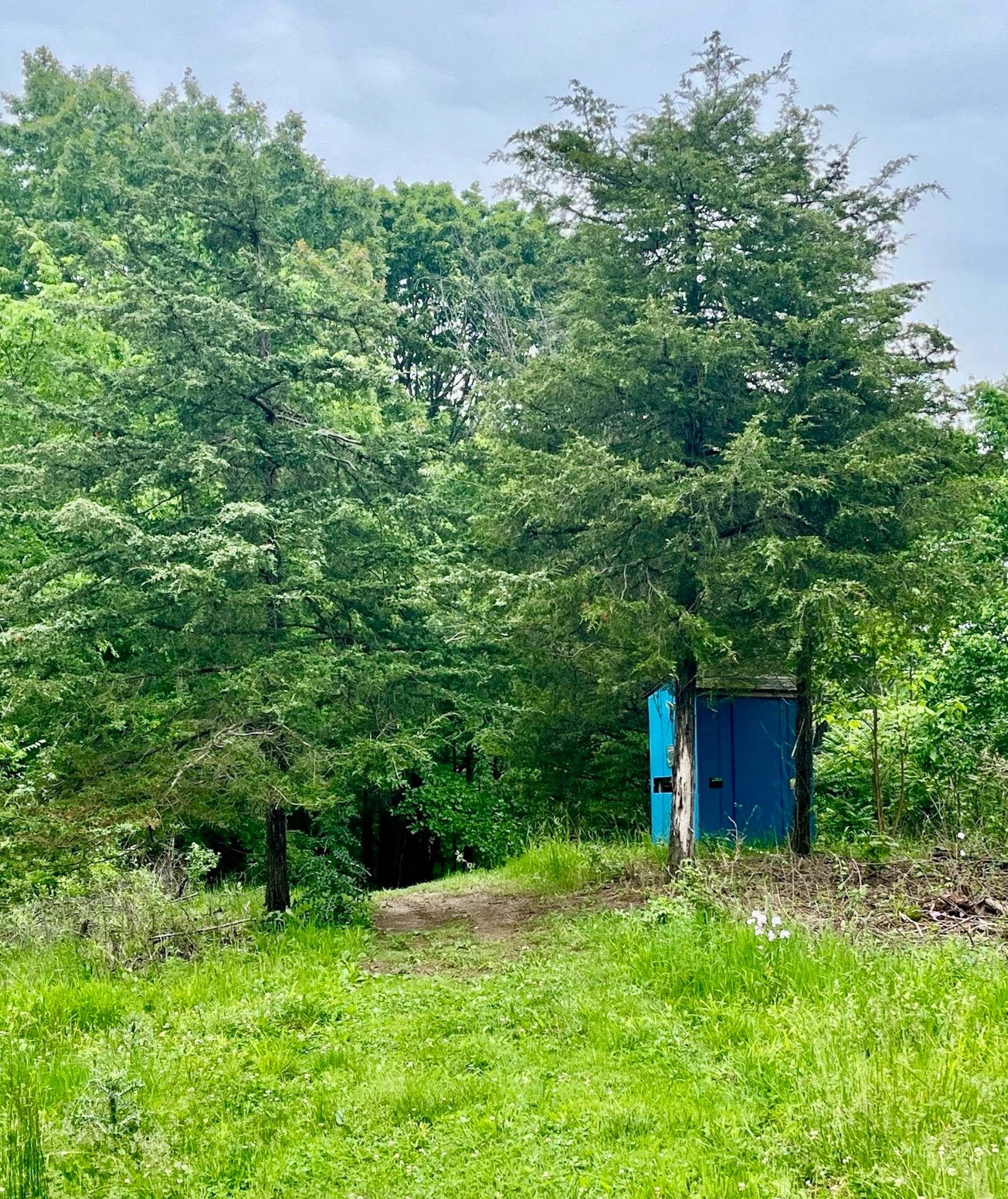 There are many pine trees on my property, but two pines that are standing close together. These two pines are on the south side of my property, near the entrance, just past the first hill. They were among the first trees I worked with when I began to remove invasive vines. Thick, ropy invasive vines had climbed into my trees and were in the process of strangling them. I had to do something to save the trees.