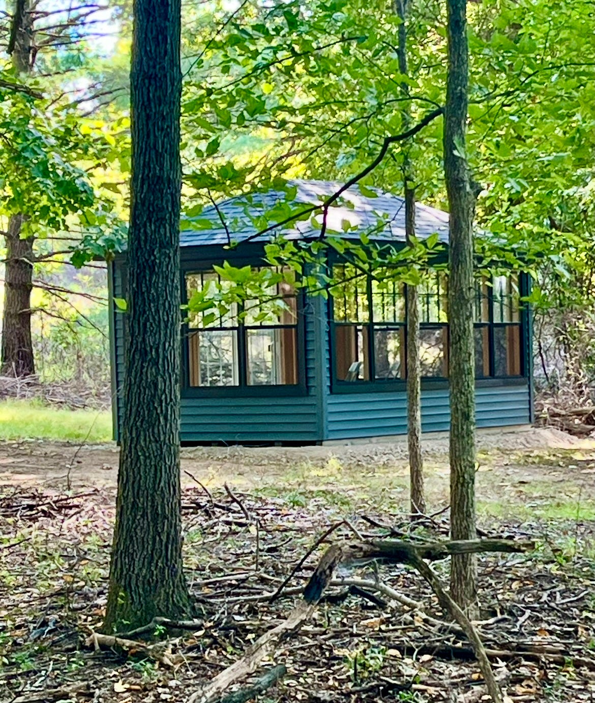 This area is also where I want to build a new screened-in structure. For two years now I have seen this structure in my head, but it hasn’t seemed the right time to do anything about it. A few weeks ago I heard the trees clearly say they needed to be cleaned up a bit before I worked on the structure. That made sense. [Author’s Note: This piece was written before my Nature Writing Cabin was put in place!]